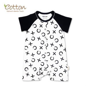 Kisses, hugs, and lots of love: from the sweet smell of their baby hair to those tiny little feet, you love your little one from head to toe. Now you can wrap them up in soft, organic cotton that features a stylish black-and-white wraparound pattern of Xs and Os. Short black sleeves and collar look super cute, whether you dress them in this printed baby romper by itself or pair it up with pants or a skirt.