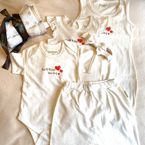Made of the finest 100% organic cotton this Love Baby Girl  newborn set will become a fantastic first gift for a little one. The fabric is so soft, it feels like mother's touch, so gentle and comfortable,  your baby will feel happy and secure wearing it once they appear in this world.